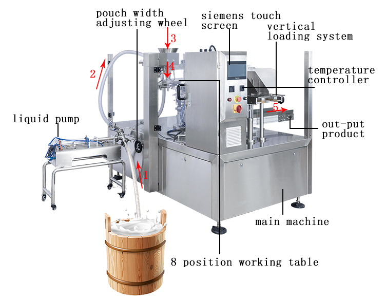 | ハイライト | hydraulic drive liquid packaging machine,fully automatic beverage packaging equipment,eight-station food packing machine |
